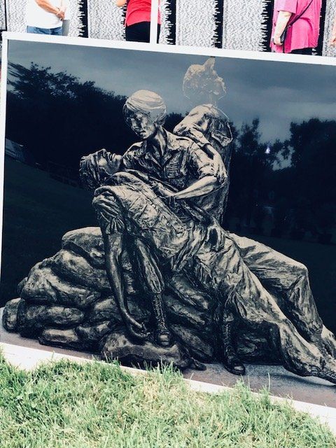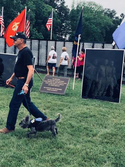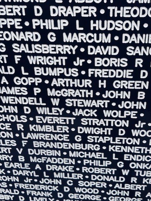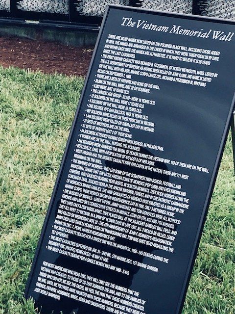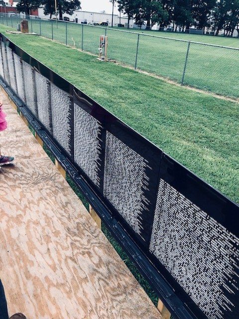 So what is the travelling wall? It's a 3/5 scale of the Vietnam Memorial in Washington DC. Standing six feet tall at the center and almost 300 feet long it is a Traveling Memorial that stands as a reminder of the great sacrifices made during the Vietnam War. It was made for the purpose of helping heal and rekindle friendships and to allow people the opportunity to visit loved ones in their home town who otherwise may not be able to make the trip to Washington.